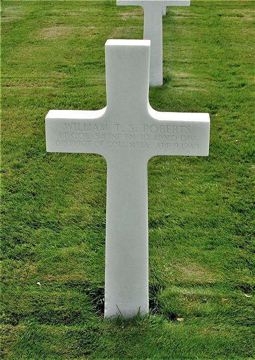 Lt Col William T. S. Roberts graduated from Tank School in 1923 and from Company Officers Course of infantry in 1932.Source of information: Peter Schouteten, www.abmc.gov, www.wwiimemorial.com, www.ancestry.com - Headstone and Interment Record / 1930 Census / Johnson Jr Family Tree, www.findagrave.com – Russ Pickett, www.10tharmored.com, www.newspapers.com – Daily Press 23 April 1945