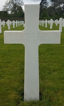 Pfc William E. Rose attended high school for two years and was a chauffeur employed by the Hansen Truck Line Co. and Delmonte Foods before he enlisted.He tried to enlist in the military multiple times. He was refused because they said he was too tall, too large to hid from the enemy, that they did not have a uniform large enough to fit him. He was finally admitted to the Infantry.