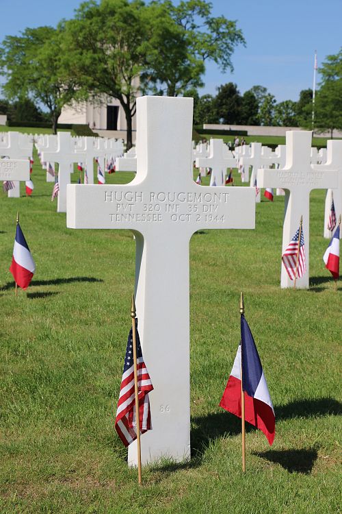 Pvt Hugh L. Rougemont was a carpenter before he enlisted at Fort Oglethorpe, Georgia on 3 December 1943. He was sent overseas in July 1944.His company was in the assault against the enemy lines in the Grémecey Forest and their mission was to retake the woods. Pvt Rougemont was performing his duties as a rifleman. Machine gun and rifle fire was encountered and he was struck by a bullet from a machine gun and killed instantly.