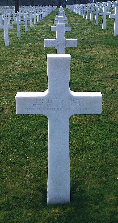 Pvt Robert A. Roy worked at the Arms Textile Company before he enlisted in Manchester, New Hampshire on 26 January 1944.His father emigrated from Canada.