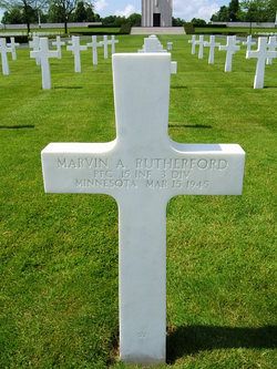 Pfc Marvin A. Rutherford attended high school for one year and worked on the family farm before he enlisted at Fort Snelling, Minnesota on 11 August 1944.He was killed by artillery shell fragments at his head.