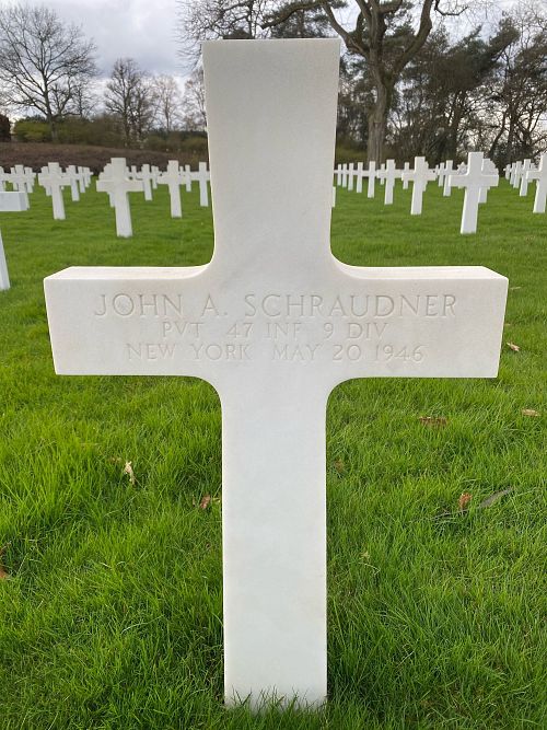 Pvt John A. Schraudner joined the Regular Army in New York City, New York on 28 March 1946.Source of information: Peter Schouteten, www.abmc.gov, www.wwiimemorial.com, www.archives.gov – WWII Enlistment Record, www.ancestry.com - Headstone and Interment Record,
