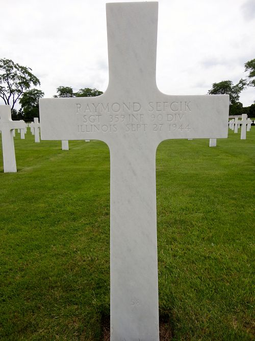 Sgt Raymond Sefcik was first buried at the Temporary American Military Cemetery in Andilly, France.Source of information: Peter Schouteten, www.abmc.gov, www.wwiimemorial.com, www.ancestry.com - Headstone and Interment Record / Sefcik Family Tree