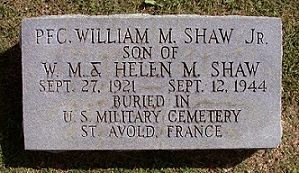 Pfc William M. Shaw Jr. graduated from Fayetteville High School and attended Davidson College for one year.He worked as a bookkeeper in a bank.