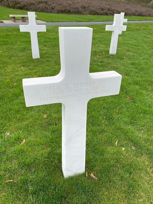 Sgt Paul S. Shimer was a retail manager employed by the J.C. Penny Co. Store.He enlisted at Fort George G. Meade, Maryland on 19 April 1944 and was sent overseas in June 1944.