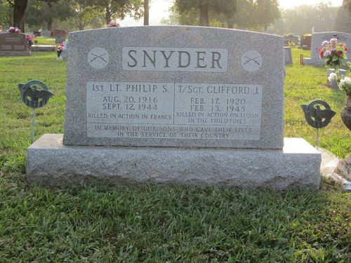 His brother T/Sgt Clifford J. Snyder is buried at Manila American Cemetery, The Philippines.