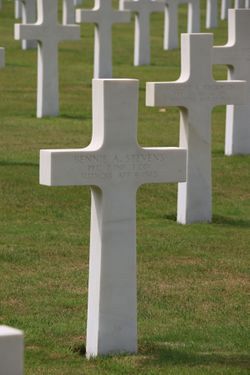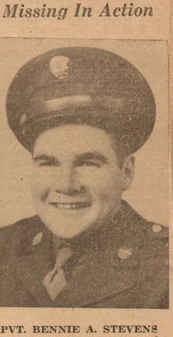 Pfc Bennie A. Stevens worked as a farmhand when he enlisted on 27 March 1944.He was killed was killed by small arms fire in the thorax.