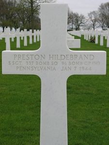 S/Sgt Preston Hildebrand was first buried at Temporary American Military Cemetery Margraten Block OO, Row 9, Grave 221.