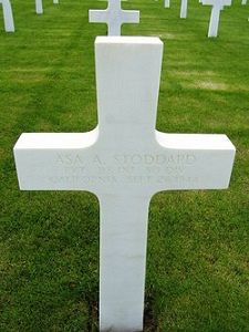 Pvt Asa A. Stoddard Jr. attended college for four years and was a teacher before he enlisted in Los Angeles, California on 29 January 1944.Source of information: Leo Minne, www.abmc.gov, www.wwiimemorial.com, www.ancestry.com - 1930/1940 Census / Headstone and Interment Record / U.S. WWII Draft Cards Young Men, www.findagrave.com, www.80thdivision.com