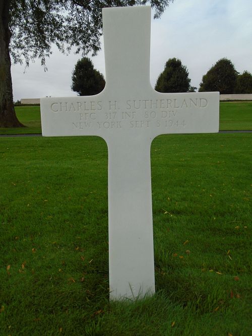 Pfc Charles H. Sutherland attended 3 years of high school and was a mechanic before he enlisted in New York City, New York on 20 November 1942.Source of information: Leo Minne, www.abmc.gov, www.wwiimemorial.com, www.ancestry.com – 1925 State Census /1940 Census U.S. / Headstone and Interment Record, www.80thDivision.com