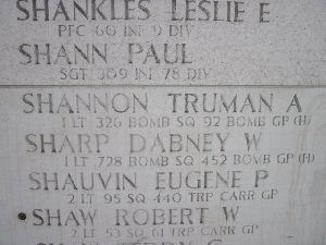 Truman A. Shannon was an architect.He volunteered for the Air Corps of the Army of the United States in Pittsburgh, Pennsylvania on 11 March 1942.