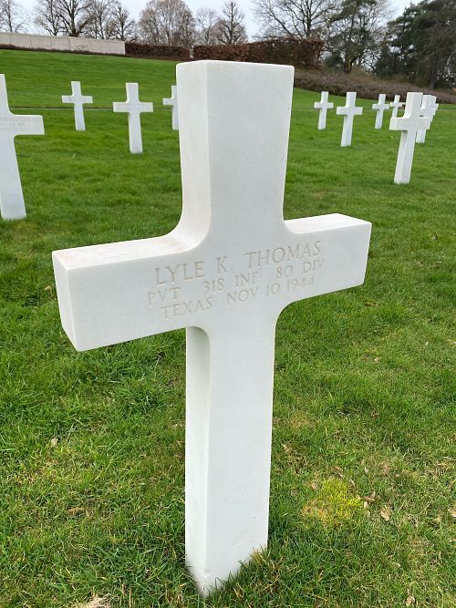 Pvt Lyle K. Thomas attended Lincoln High School in Lincoln, Nebraska and was in his 4th year of College in 1940 when he enlisted on 16 October 1940. At that time he was also working as a waiter.Source of information: Leo Minne, www.abmc.gov, www.wwiimemorial.com, www.ancestry.com - 1920/1930/1940 Census / Headstone and Interment Record / U.S. WWII Draft Cards Young Men / Isaacson Family Tree / U.S. School Yearbooks, www.80thdivision.com