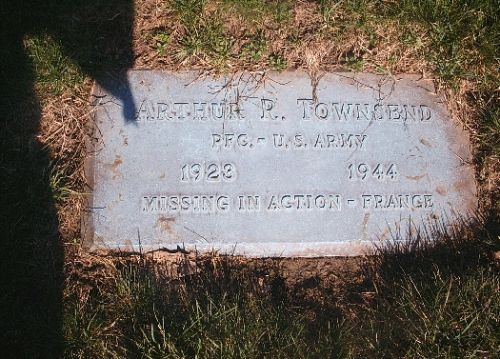 Pfc Arthur R. Townsend attended high school for four years before he enlisted in Buffalo, New York on 22 January 1943.Sgt Eugene T. Duggan and Pfc Arthur R. Townsend were members of a patrol sent out to determine enemy strength in the town of Gréning, France on 23 November 1944. Upon entering the town they met intense enemy opposition, and were not seen afterwards by members of their organization who entered the town on the next day. A thorough search was conducted, but no trace of the missing persons could be found. It is logical to conclude that Sgt Eugene T. Duggan and Pfc Arthur R. Townsend were killed in action in the town of Gréning, France on 23 November 1944.