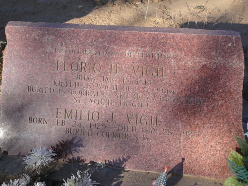Pfc Florio H. Vigil was a farmer on his own ranch before he enlisted in Santa Fe, New Mexico on 1 July 1942.He was killed by artillery shell fragments to his stomach.