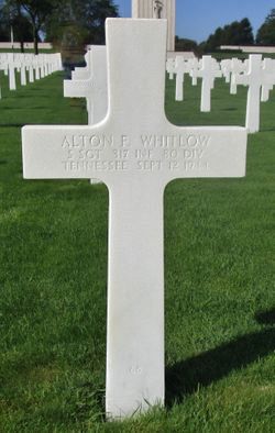 S/Sgt Alton F. Whitlow attended the Union University in Jackson, Tennessee for four years and was a manager before he enlisted in Fort Oglethorpe, Georgia on 23 June 1942.Source of information: Leo Minne, www.abmc.gov, www.memorial.com, www.ancestry.com - 1920/1930/1940 Census / Headstone and Interment Record, www.80thdivision.com