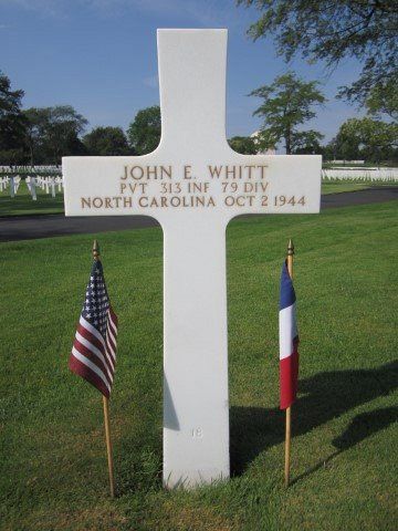 Pvt John E. Whitt was employed at the Elder Theatre in Siler City before he enlisted.He was first buried at the Temporary American Military Cemetery in Andilly, France.