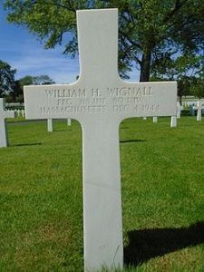 Pfc William H. Wignall attended college for two years and was a department head at Rook’s Furrier in Salem, Massachusetts before he enlisted in Boston, Massachusetts on 6 December 1943.He was killed by small arms fire in his leg and loin.