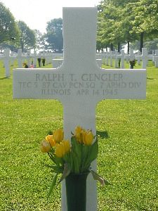 T/5 Ralph T. Gengler enlisted at Camp Grant, Illinois on 23 January 1942.One of the photos shows the son of the family where Ralph was billeted during the war kneeling at Ralph's grave.