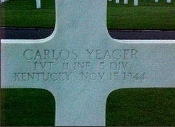Pvt Carlos L. Yeager joined the Regular Army in Louisville, Kentucky on 8 August 1941. He worked for an architect before he enlisted.He was first buried in the U.S. Temporary Cemetery Limey, Toul, France.