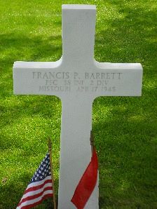 Pfc Francis P. Barrett was a chauffeur before he enlisted at Jefferson Barracks, Missouri on 4 September 1942.The Barrett Brothers were young men who lived and played in this North St. Louis neighborhood They gave up their lives during world war II, along with four of their cousins-all great grandsons of Irish famine immigrants Patrick and Mary Barrett. The Barrett brothers Park was dedicated to their memory in 1947.