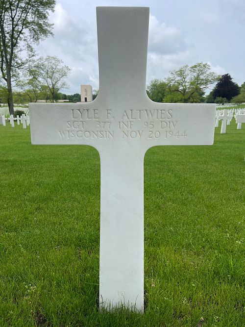 Sgt Lyle F. Altwies was first buried at the Temporary American Military Cemetery of Limey, France.Source of information: Peter Schouteten, www.abmc.gov, www.wwiimemorial.com - Barbara L. Klein (niece), www.ancestry.com - Headstone and Interment Record / 1930 Census / Sireno Weber Family Tree, http://mathieu.gitzhofer.free.fr/irongb.php,