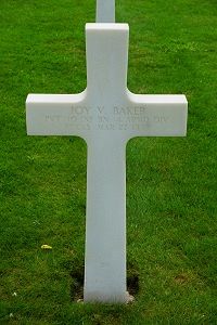 Pvt Joy V. Baker enlisted At Fort Sam Houston, Texas on 6 October 1944.His initial burial took place on Saint Avold Cemetery, Metz, France.