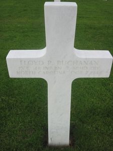 Pvt Floyd R. Buchanan enlisted in December 1943 and had been overseas since August 1944.He was initially buried in a temporary grave at Henri-Chapelle on 25 October 1944. After being disinterred and after the cemetery was given a permanent status he was given his final resting place on 23 June 1948.
