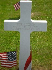 Pfc Nick Lozich enlisted at Camp Beauregard, Louisiana on 28 June 1944. Nick Lozich was born as Niko Lozić.Source of information: Raf Dyckmans, Peter Schouteten, Laura Phillips, www.wwiimemorial.com, www.archives.gov, www.ancestry.com - Headstone and Interment Record / WWII Registration card