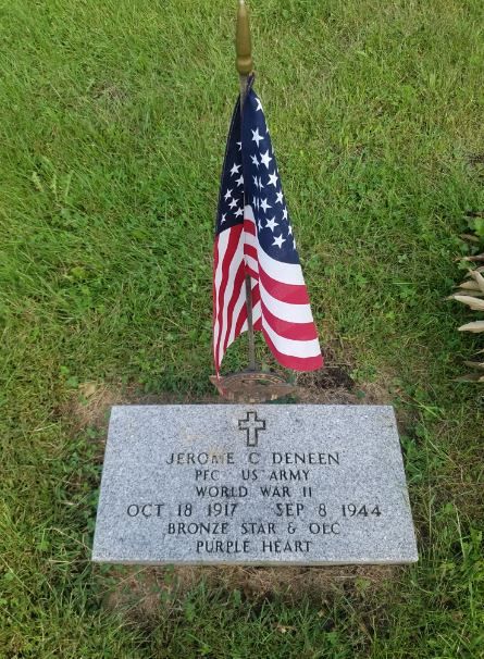 Pfc Deneen was buried at St Barnabas Cemetery with full honors in Mazomanie, Wisconsin on 8 Sepember 2001 - exactly 57 years after his death.