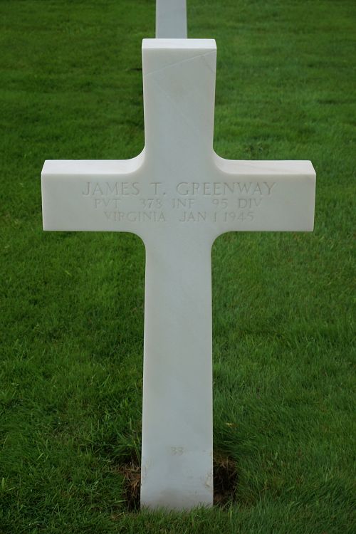 Pvt James T. Greenway enlisted in Roanoke, Virginia, on 18 May 1943.Source of information: Peter Schouteten, www.abmc.gov, www.wwiimemorial.com, www.archives.gov – WWII Enlistment Record, www.ancestry.com - Headstone and Interment Record.