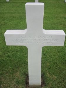 Pvt Sam A. Franco enlisted at Fort Leavenworth, Kansas on 22 June 1944.He was a graduate of Technical High School and was employed by the Union Pacific before entering the Army in June 1944. He had been overseas since December 1944.
