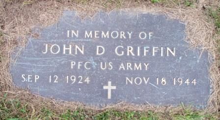 Pfc John D. Griffin enlisted in Allentown, Pennsylvania, on 24 February 1943.He attended high school for 4 years and was a mining-machine operator before he enlisted.