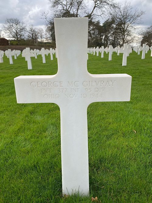 Pvt McGilvray was first buried at the Temporary American Military Cemetery of Limey, France.