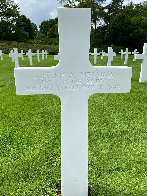 Pvt Joseph A. Messina attended high school for two years and was a plumber.He enlisted in Fort Devens, Massachusetts on 22 February 1944.