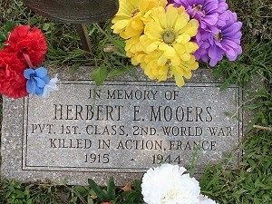 Pfc Herbert E. Mooers was a driver before he enlisted in Bangor, Maine on 30 November 1942.He was first buried at the Temporary American Military Cemetery of Limey, France.