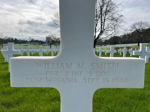 Pvt William M. Smith graduated from Pittston High School in 1936. He worked at the roundhouse of the Lehigh Valley Railroad before he enlisted at Fort George G. Meade, Maryland.Source of information: Leo Minne, www.abmc.gov, www.archives.gov - WWII Enlistment Record, www.ancestry.com - 1920/1930 Census / Veteran Compensation Application File, www.newspapers.com - Wilkes-Barre Times Leader