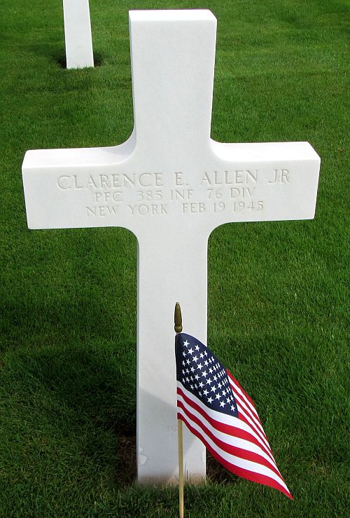 Pfc Clarence E. Allen attended South Junior High School and was employed by the Woodruff Hotel.He enlisted at Fort Dix, New Jersey on 1 April 1944. He went overseas in November 1944.