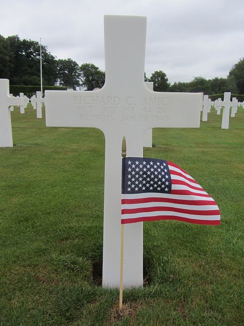 Pvt Richard C. Amick attended York Community High School.Source of information: Peter Schouteten, Terry Hirsch, www.abmc.gov, www.wwiimemorial.com, www.ancestry.com - Headstone and Interment Record / Pence III Family Tree, http://www.94thinfdiv.com, WWII Draft Card