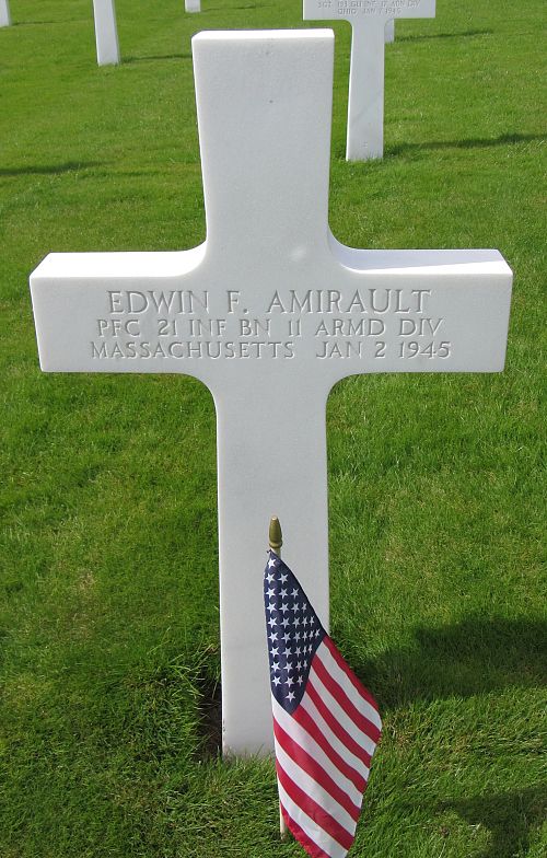 Pfc Edwin F. Amirault enlisted in Boston, Massachusetts on 13 August 1942.Source of information: André Koch, www.abmc.gov, www.wwiimemorial.com, www.archives.gov – WWII Enlistment Record, www.ancestry.com - 1920/1930/1940 Census / Headstone and Interment Records / U.S. WWII Draft Cards Young Men, 1940-1947 / California, County Birth, Marriage, and Death Records, 1849-1980 - http://www.11tharmoreddivision.com/history/21st_AIB.html,