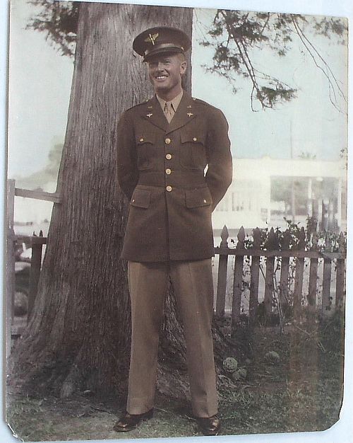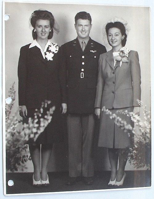Thomas Gray was married to Marion Chavon on 29 June 1943 in Boise, Idaho, where he was stationed for pilot training.One picture is their wedding photo, where she poses on the right side. The lady on the left is her sister Irene.