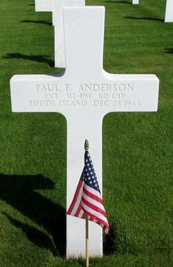 Pvt Paul F. Anderson attended college for one year and was an insulation worker before he joined the Regular Army in Graham, North Carolina on 25 February 1939.He is also remembered at the North Burial Ground in Providence.