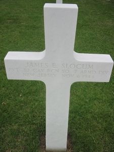 Pvt James E. Slocum attended Manasquan High School and was employed at the officer's club at Fort Monmouth.He enlisted at Fort Monmouth in March 1942 and served with the Signal Corps there until July 1944 when he was sent overseas.