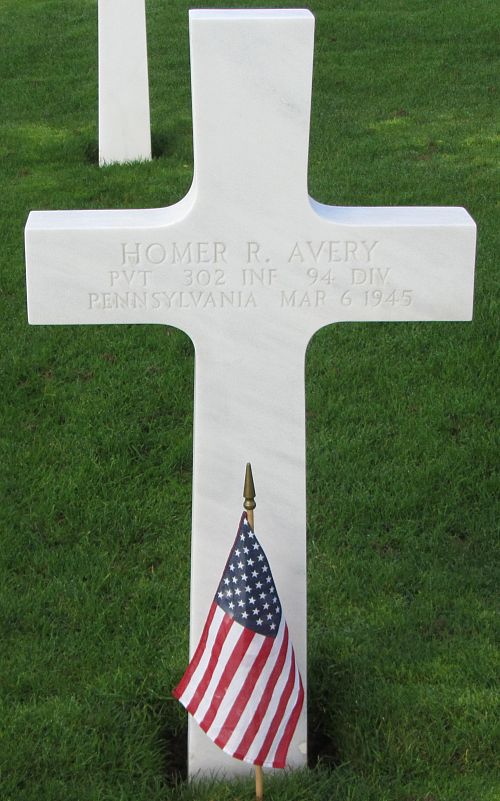 Pvt Homer R. Avery attended high school for 3 years before he enlisted in Erie, Pennsylvania on 15 September 1944.Source of information: Peter Schouteten, www.abmc.gov, www.wwiimemorial.com, www.archives.gov – WWII Enlistment Record, www.ancestry.com - Headstone and Interment Record / U.S. WWII Draft Cards Young Men, http://www.94thinfdiv.com