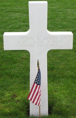 S/Sgt John A. Ayers was a salesman at Montgomery Ward and Company before he enlisted in Chicago, Illinois on 8 April 1941.Source of information: Leo Minne, www.abmc.gov, www.wwiimemorial.com, www.archives.gov - WWII Enlistment Record, www.ancestry.com - Headstone and Interment Record / 1910/1920/1940 Census / Wilson Family Tree, A footsoldier for Patton - Michael C. Bilder and James G. Bilder, The 5th Infantry Division in the ETO