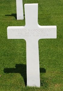 Pfc Willard Bahooshian was married to Angeline Jacot in 1940. He was employed by the Accurate Tool Company of Plainfield, New Jersey.He enlisted at Fort Dix, New Jersey on 26 April 1944, and received his training at Camp Croft, South Carolina and Camp McCoy, Wisconsin.