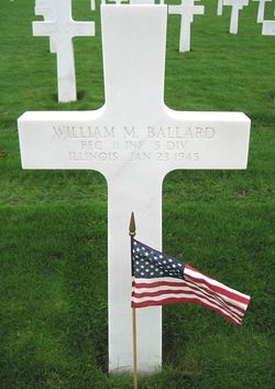 Pfc William M. Ballard worked on a farm before he joined the Regular Army in Louisville, Kentucky on 17 June 1941.Source of information: Leo Minne, www.abmc.gov, www.wwiimemorial.com, www.archives.gov – WWII Enlistment Records, www.ancestry.com – 1930/1940 Census / U.S. Headstone and Interment Record / Kempf Griffin Family Tree/ U.S. Draft Cards Young Men, www.findagrave.com, A footsoldier for Patton / Michael C. Bilder James G. Bilder, The 5th Infantry Division in the ETO