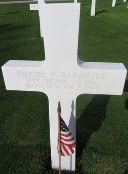 Pvt Daniel P. Baransky attended high school for two years and was a model maker before he enlisted in Allentown, Pennsylvania on 3 July 1944.Source of information: Leo Minne, www.abmc.gov, www.wwiimemorial.com, www.ancestry.com – 1930/1940 Census / U.S. Headstone and Interment Record / U.S. Draft Cards Young Men / Pennsylvania Veteran Compensation Applications, www.80thdivision.com