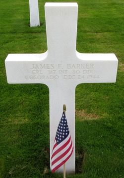 Cpl James F. Barker was in partnership with his father in the trucking business before he enlisted in Pueblo, Colorado on 18 July 1942.Source of information: Leo Minne, Terry Hirsch, www.abmc.gov, www.wwiimemorial.com, www.ancestry.com - 1930 Census / Headstone and Interment Record / Baxter-Whitney-Kruse Family Tree, www.80thdivision.com, WWII Draft Card