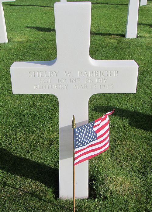 Source of information: Peter Schouteten, www.abmc.gov, www.wwiimemorial.com, www.archives.gov - WWII Enlistment Record, www.ancestry.com - Headstone and Interment Record / U.S. WWII Draft Cards Young Men / U.S. WWII Hospital Admission Card Files / Barriger Family Tree, www.fold3.com - 26th Infantry Division, www.newspapers.com - The Park City Daily News 2 September 1945