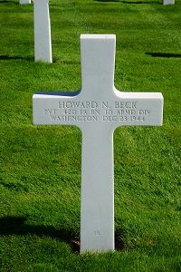 Pvt Howard N. Beck attended the Lake Preston High School before he enlisted on 1941. He was sent overseas in September 1944.He was first buried at the Temporary American Military Cemetery in Grand-Failly, France.